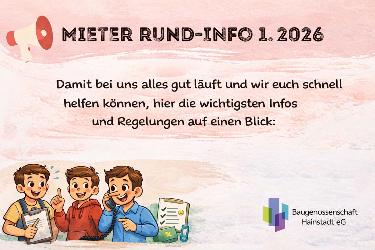 Neuigkeiten aus unserer Genossenschaft, Informationen für Mieter und Einblicke in unsere Arbeit für bezahlbaren Wohnraum in Hainstadt.